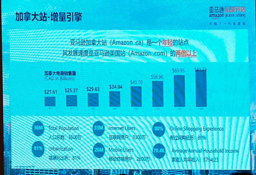 加拿大占是個潛力股,是一個正在繼續(xù)增量的快速發(fā)展站點,其發(fā)展速度是美國站的兩倍。更容易搶占商機。