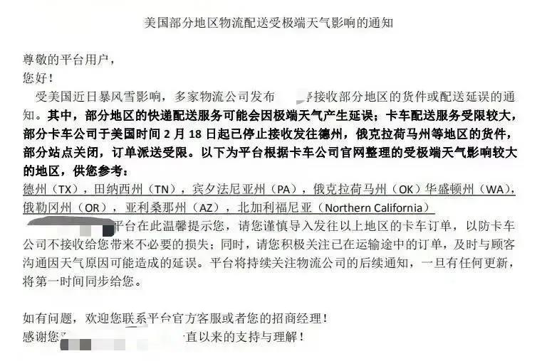 2021年新年剛過,美國那邊暴風雪襲來不少地區(qū)停水停電,以美國德州地區(qū)最為嚴重。還給交通帶來了非常糟糕的情況,這些大雪封路的地區(qū)無論是FBA頭程尾端部分還是FBA部分都會有1-3周的延遲。