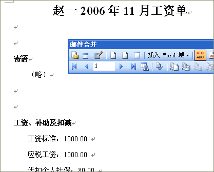 下面就以工資單和工資條為例說明如何使用Word的郵件合并。示例是在Word2003中進(jìn)行的,在Word2000、Word2002(XP)和Word2007中也是類似的操作。